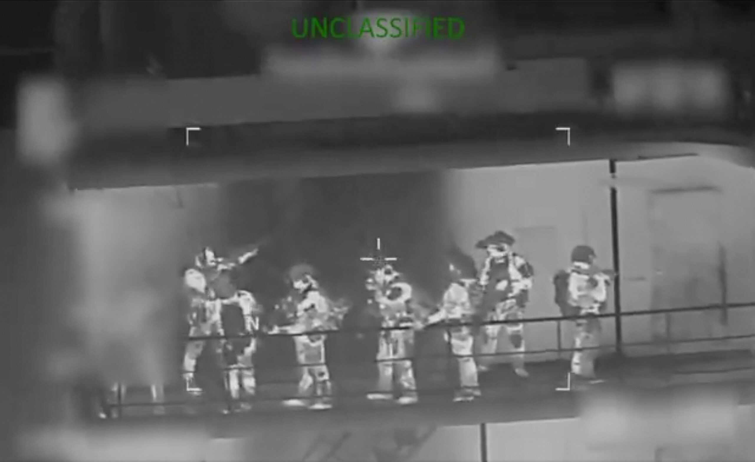 होमलैंड सुरक्षा सचिव क्रिस्टी नोएम द्वारा जारी वीडियो में मोटर टैंकर सोफिया को 7 जनवरी, 2026 को कैरेबियन के पास अंतरराष्ट्रीय जल में पकड़ा जाता हुआ दिखाया गया है।