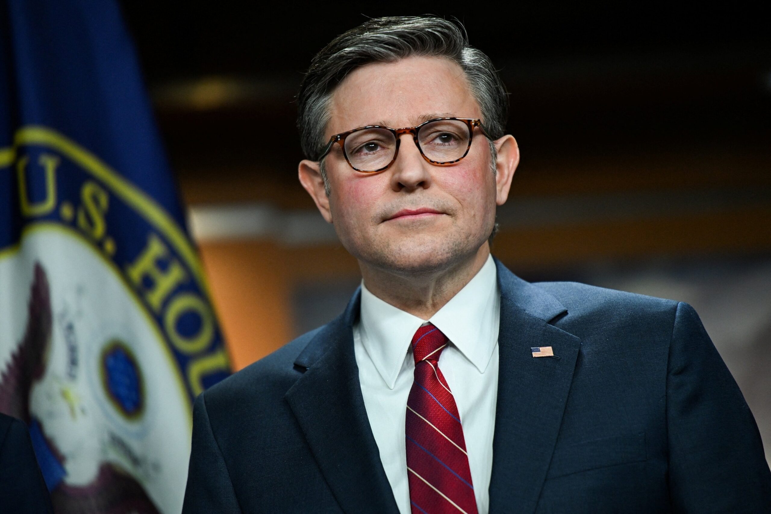 हाउस स्पीकर माइक जॉनसन ने 3 फरवरी, 2026 को वाशिंगटन में कैपिटल हिल पर एक प्रेस कॉन्फ्रेंस की।