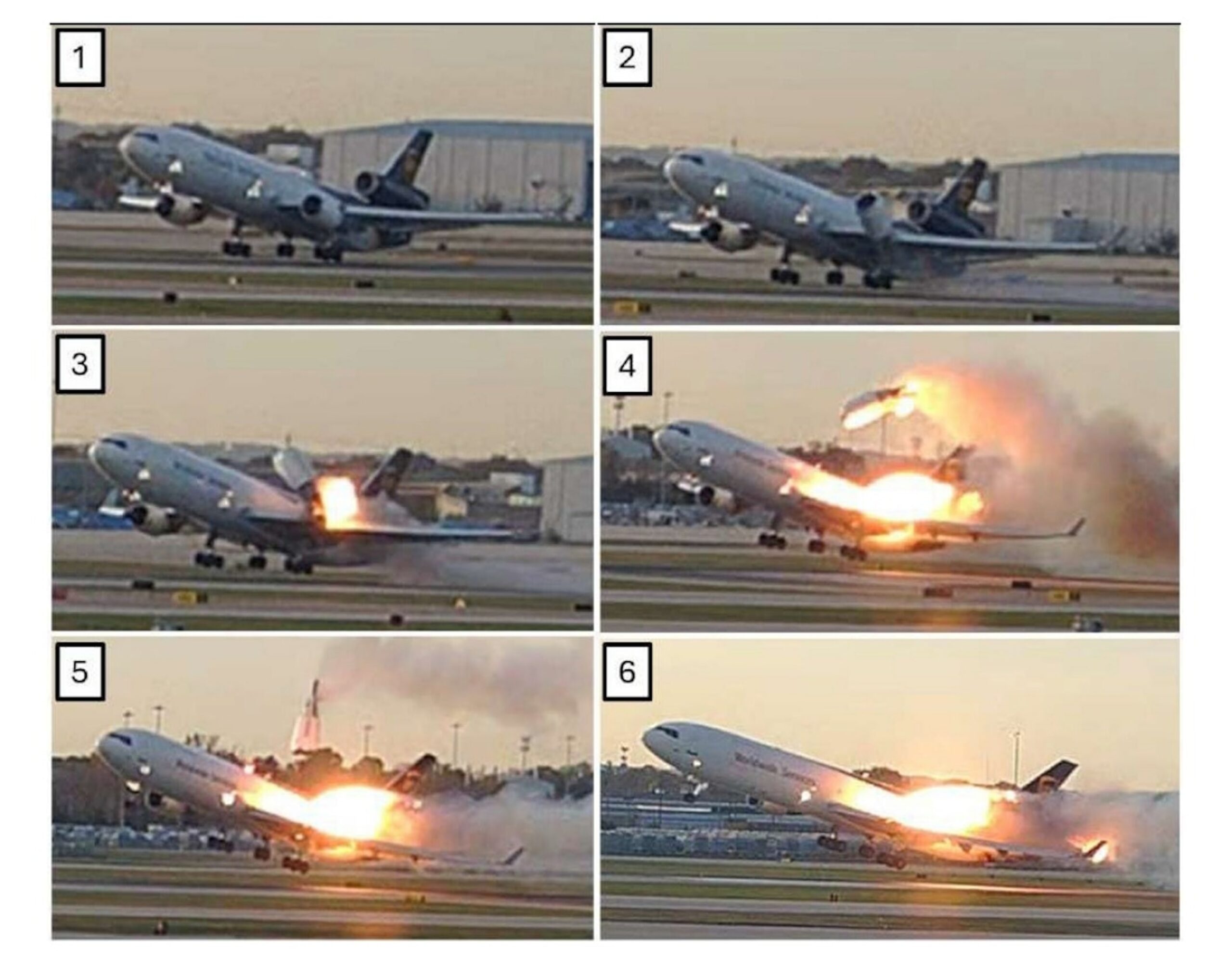 राष्ट्रीय परिवहन सुरक्षा बोर्ड की रिपोर्ट में शामिल तस्वीरें उस क्षण को दिखाती हैं जब 4 नवंबर, 2025 को लुइसविले, केंटकी में टेकऑफ़ के दौरान एक यूपीएस विमान का इंजन बंद हो गया।