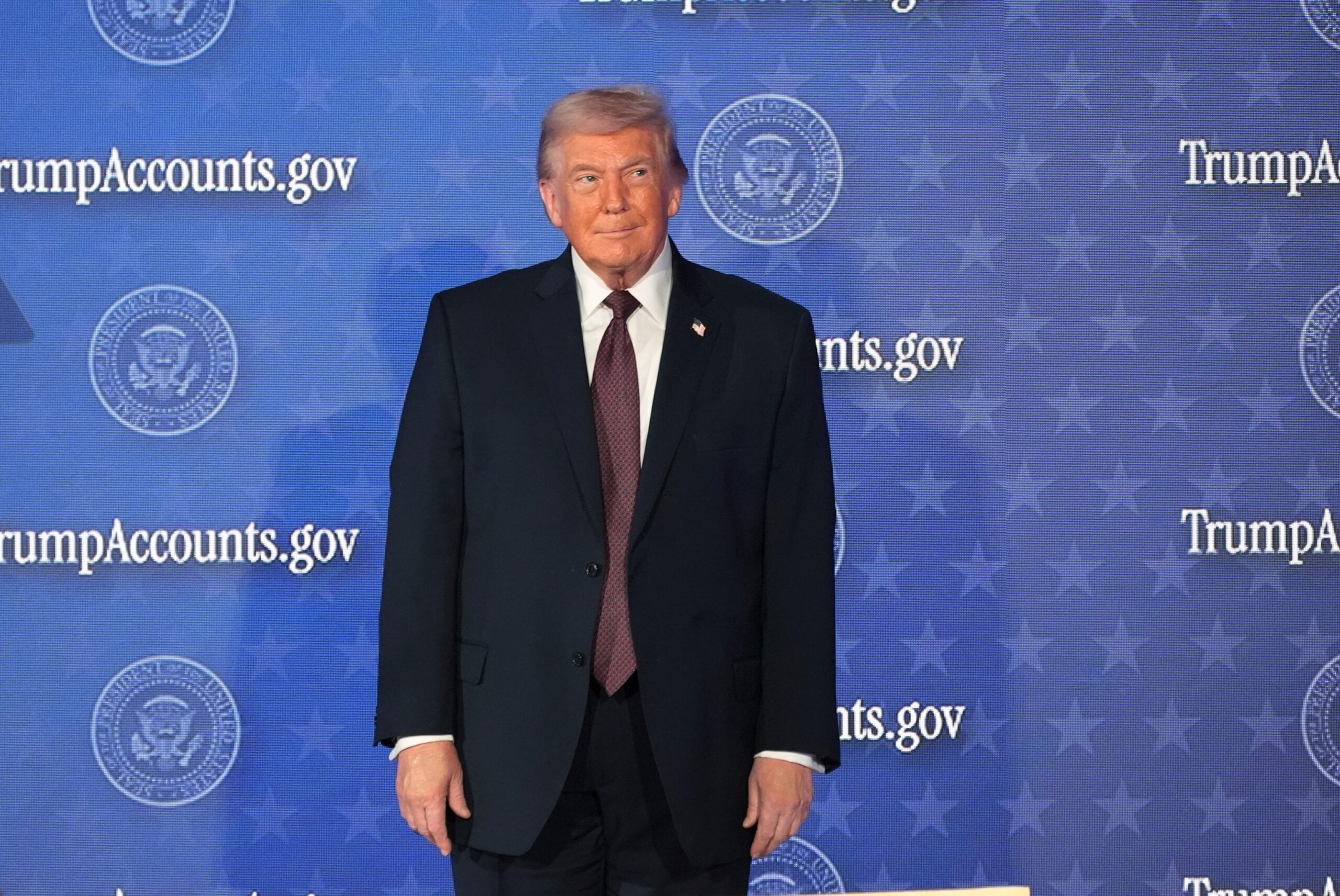 राष्ट्रपति डोनाल्ड ट्रम्प 28 जनवरी, 2026 को वाशिंगटन में “ट्रम्प अकाउंट्स” पर एक कार्यक्रम के लिए पहुंचे।