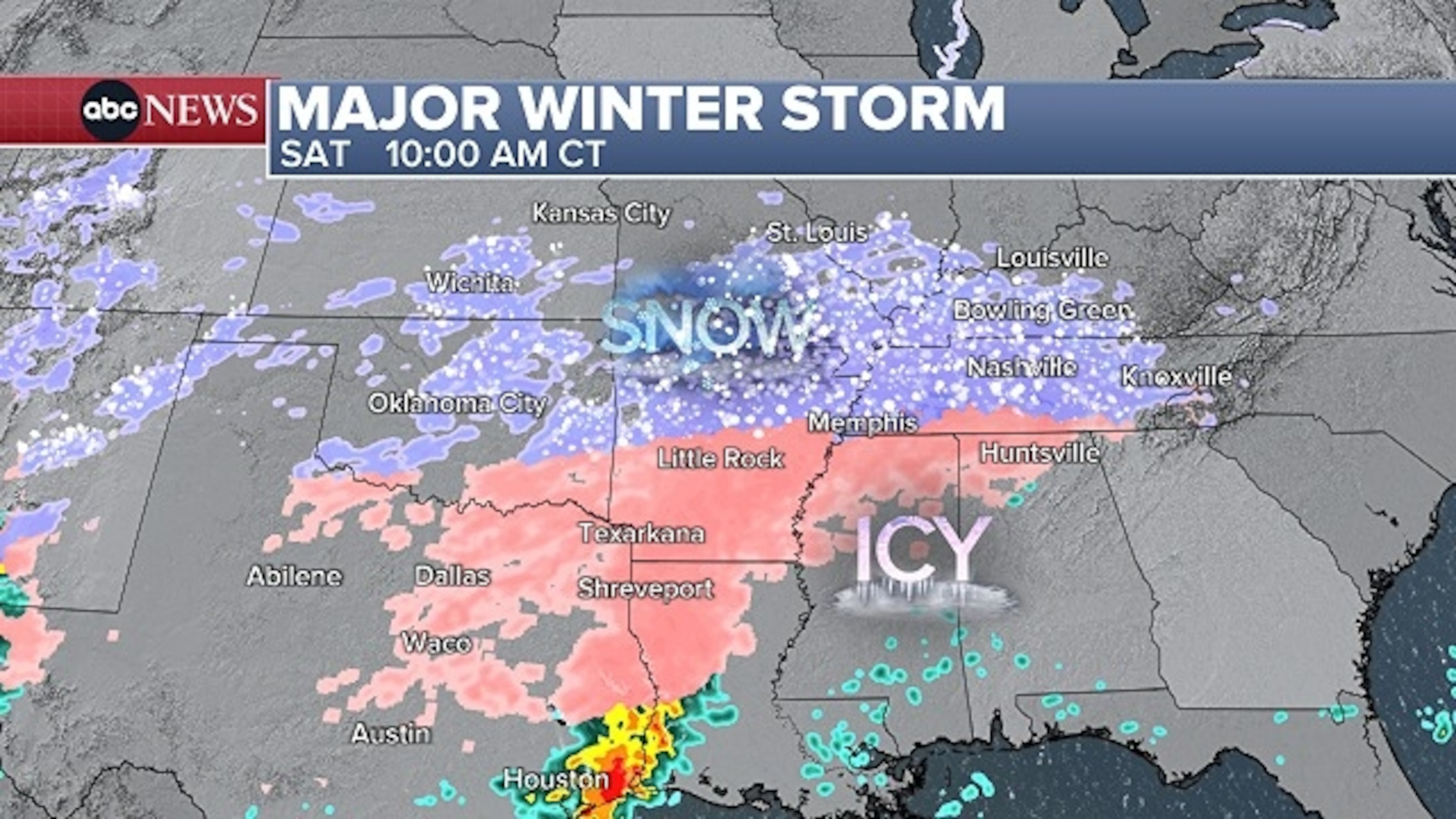 शनिवार की सुबह, बर्फ और बर्फ टेक्सास से अरकंसास से टेनेसी तक फैल जाएगी।
